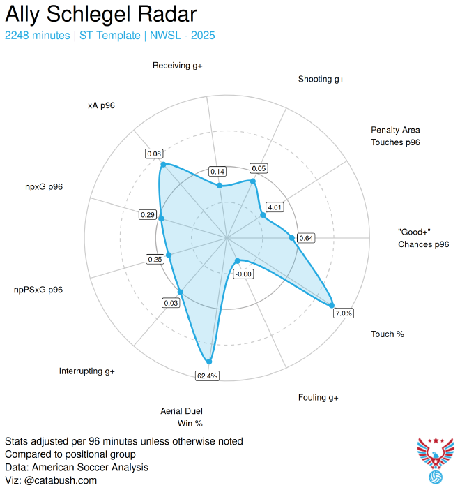 • presents an aerial threat (20% of her shots in 2025 were off of set pieces.)