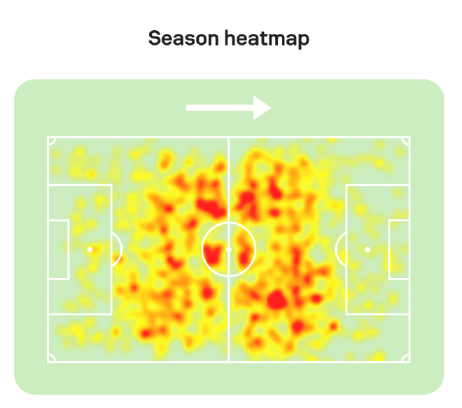 Evaluated as striker: shows a high touch rate due to midfield minutes